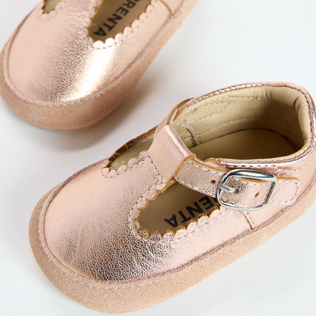 Zora Rose Gold Metallic Soft Sole T-Bar